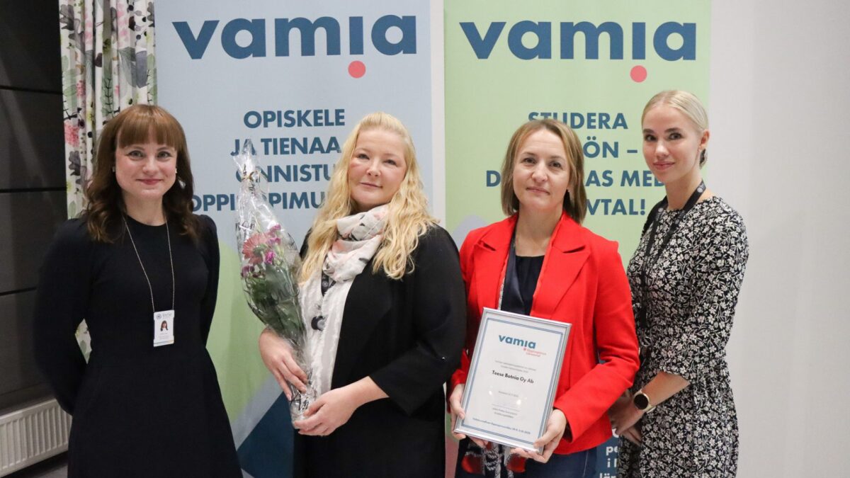 Vamian oppisopimuspalvelut valitsi TeeSen Vuoden työnantajaksi