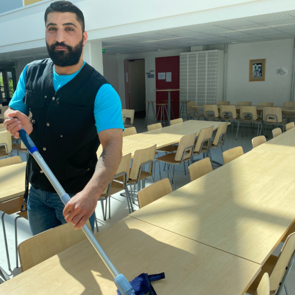 Abdulquader Al-Jaf, anstaltsvårdare i Borgaregatans skola i Vasa, har jobbat för TeeSe sedan sommaren 2022. Under sin tid som sommarjobbare hjälpte han med grundstädning vid olika objekt, och hösten 2022 började hans arbete i Borgaregatans skola. Tack vare en tips från en vän frågade han sommaren 2023 om det skulle vara möjligt att gå med i anstaltsvårdarnas läroavtalsgrupp.