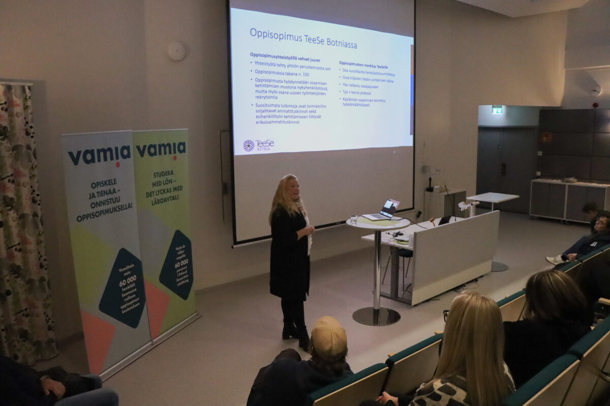 Myös HR-johtajamme Susanna Arpiainen kertoi oppisopimusviikon puheenvuorossaan oppisopimuksista TeeSe Botniassa ja yhteistyöstä, jota on tehty Vamian kanssa TeeSen perustamisesta lähtien. Susannan tärkeimmät nostot: