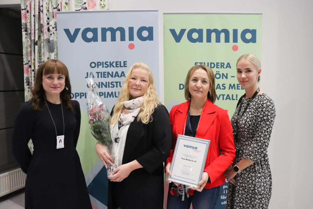 -TeeSe Botnia on monimuotoinen ja hyvä yhteistyökumppani, joka on tarjonnut jo monta vuotta laaja-alaisesti oppisopimuskoulutusta sekä esihenkilöille että muulle henkilökunnalle, ja hyödyntänyt myös rekrytoivaa oppisopimuskoulutusta, perusteli Vamian työelämä ja yrityspalveluiden asiakkuuspäällikkö Jukka-Pekka Suoraniemi valintaa.